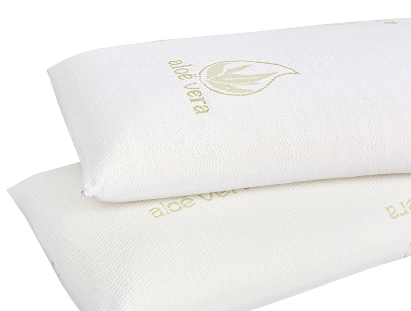 Núcleo de espuma viscoelástica con funda de Aloe Vera. Esta almohada favorece la circulación sanguinea y consiguen que el cuello y la cabeza tengan una posición correcta.
