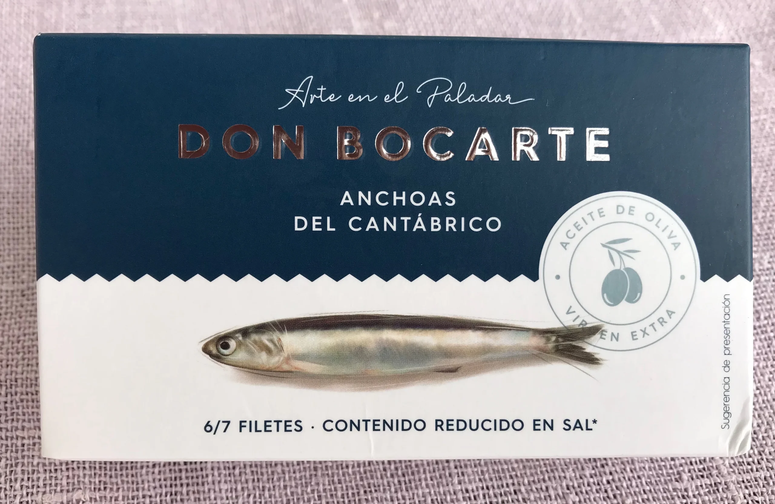 Anchoas Don Bocarte del Cantábrico en aceite de oliva. 6/7 filetes. Reducido en sal.