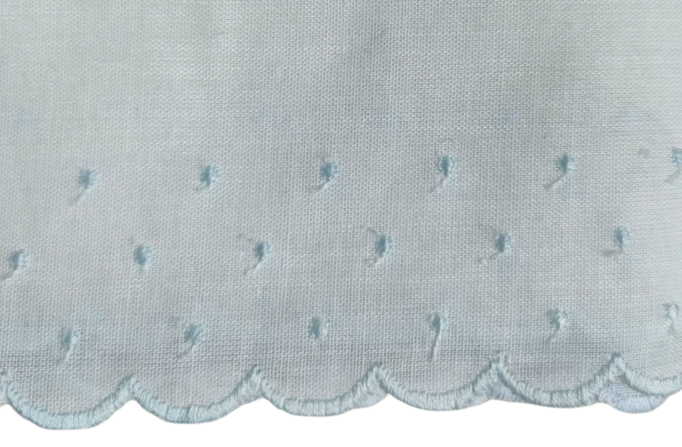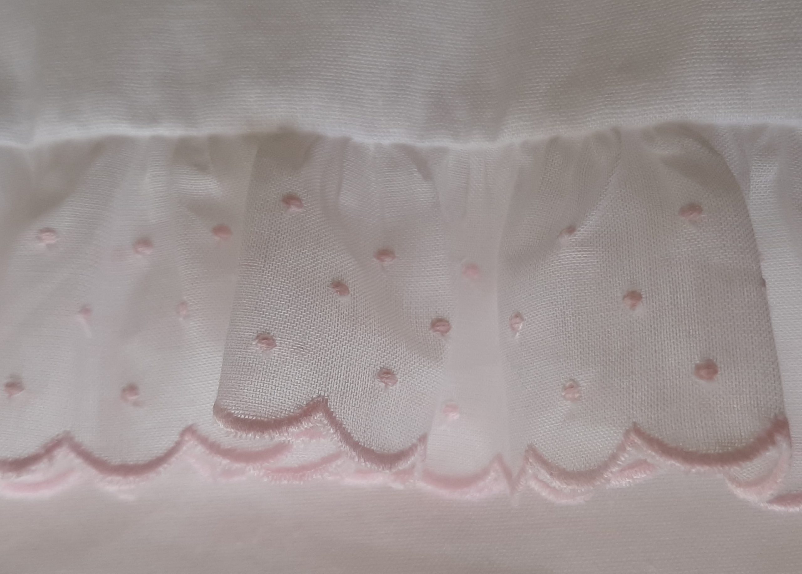Está confeccionada a mano con la tela y el encaje en algodón 100%.