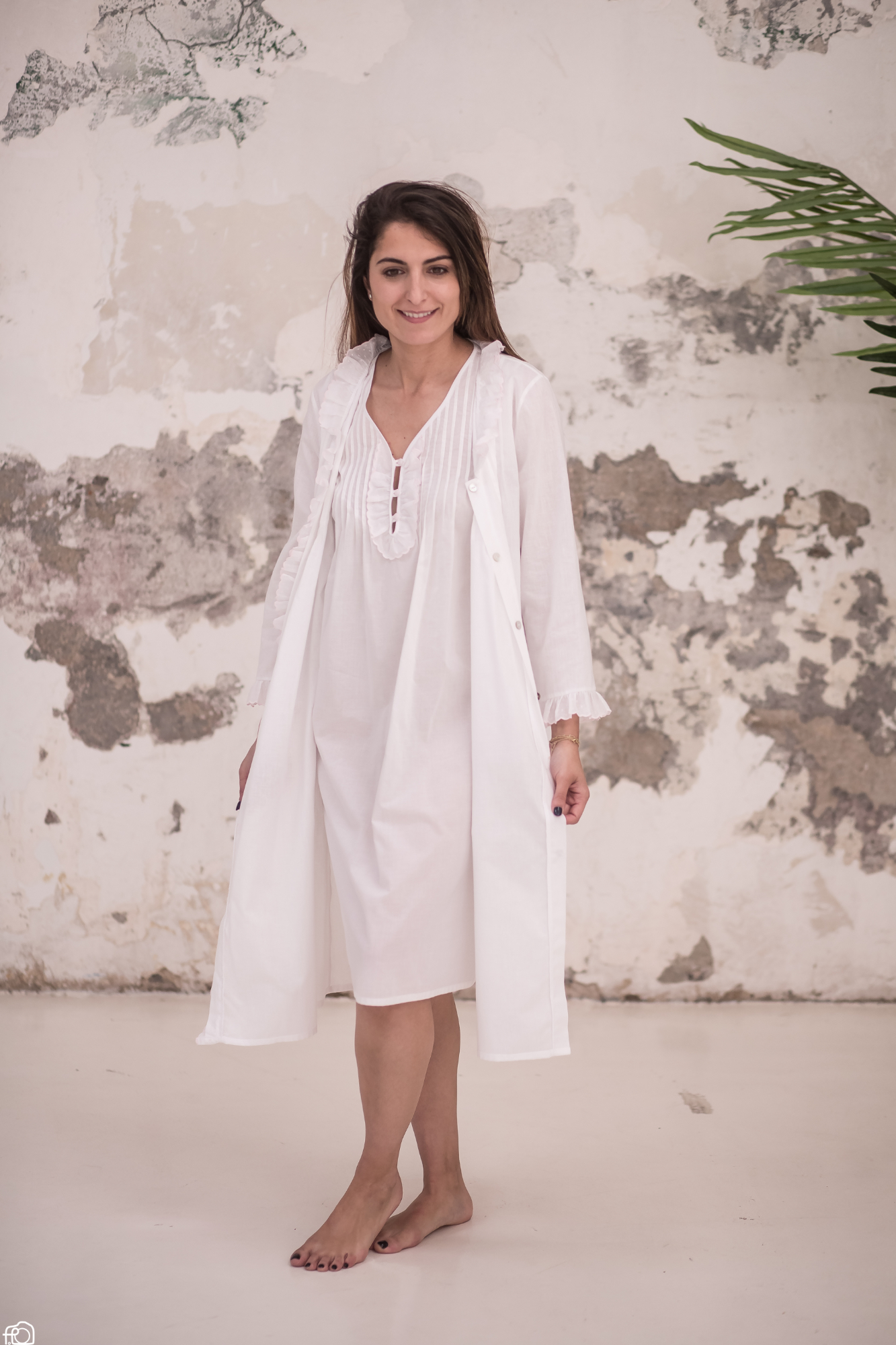 Bata para mujer con tira de encaje confeccionada artesanalmente en España – Modelo Tulipán