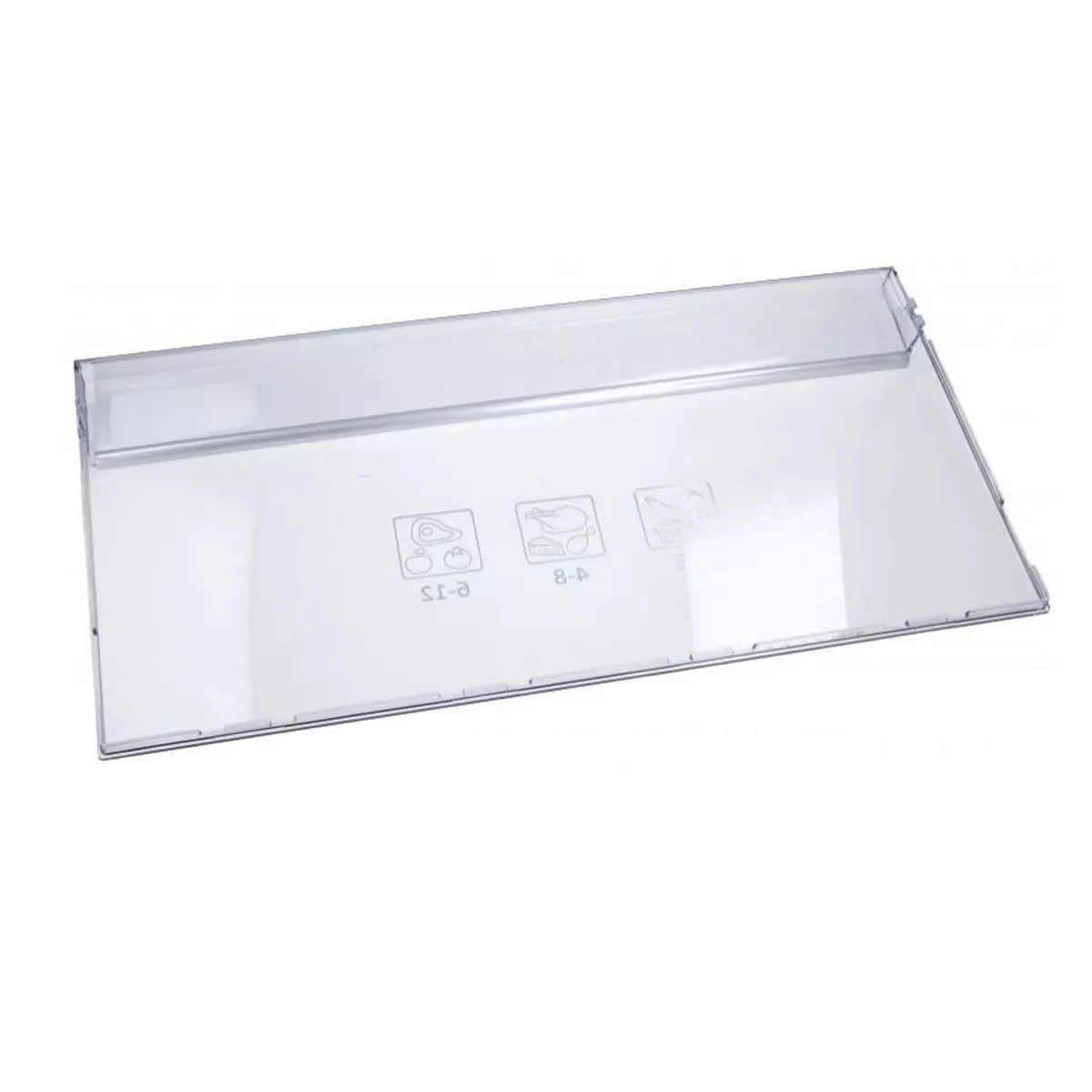Frente embellecedor de cajón de congelador de nevera Beko. Pieza de recambio en plástico translucido.
