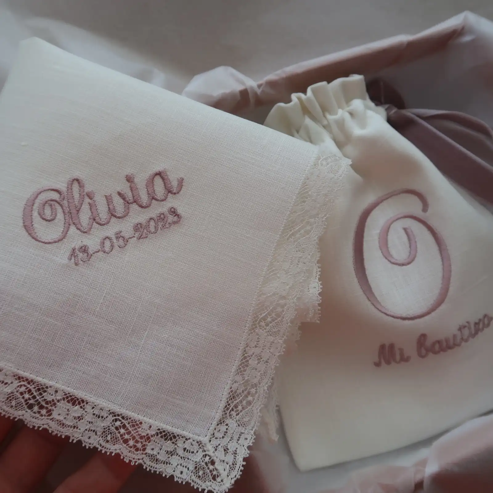 Bolsa para concha de bautizo, personalizada con la inicial del bebé. Es de lino 100% de color marfil. No hay mejor forma de atesorar uno de los objetos que captura un momento emotivo que quedará para el recuerdo. En España es tradición que la regalen los padrinos del bebé. Nuestra propuesta es coordinarlo a juego con el pañuelo que se utiliza en la ceremonia para secar la cabecita del bebé.