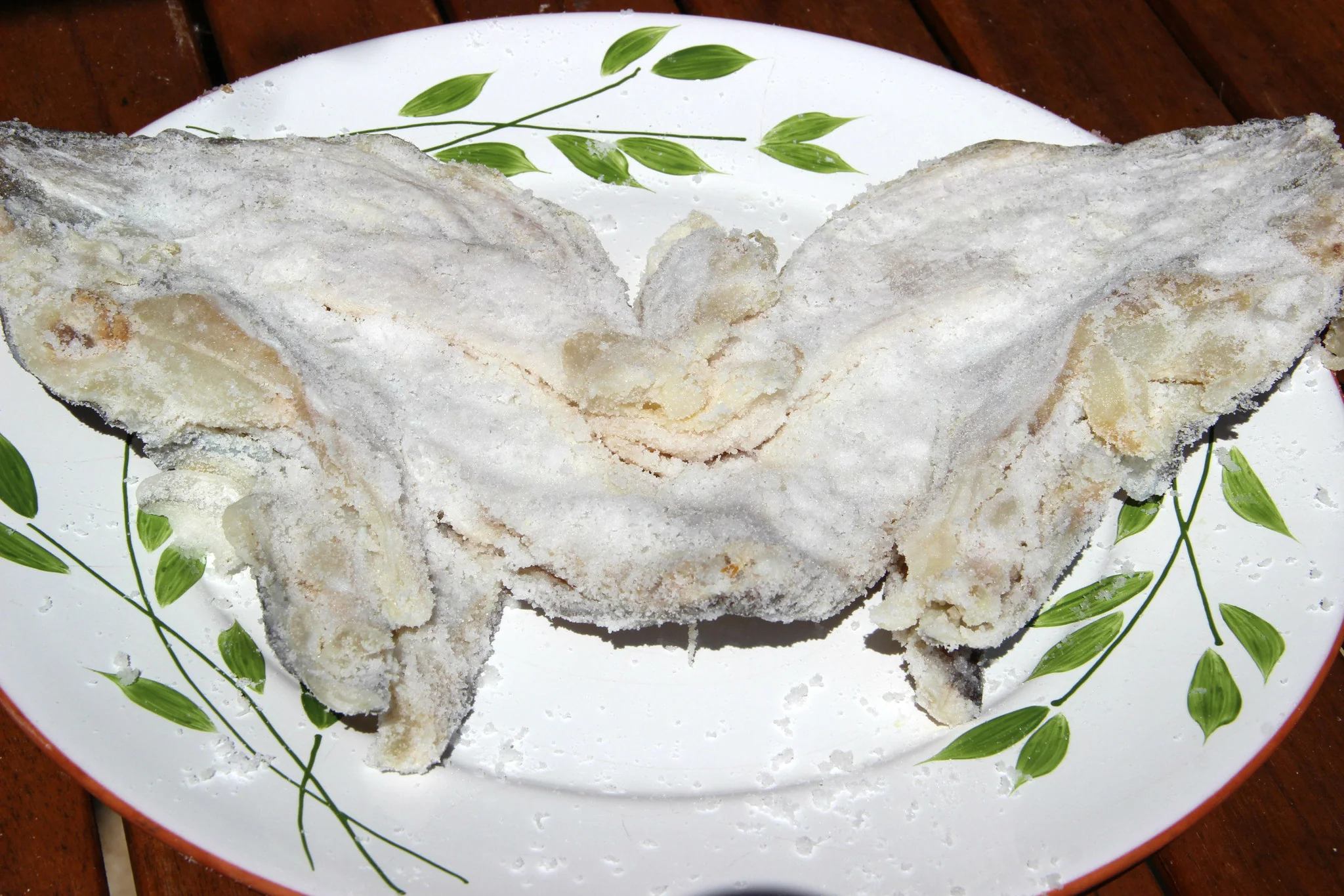 El bacalao está en salazón. Aquí tienes las instrucciones para desalar bien el bacalao: http://bacalao-irun-la-visera.myshopify.com/pages/el-desalado-del-bacalao