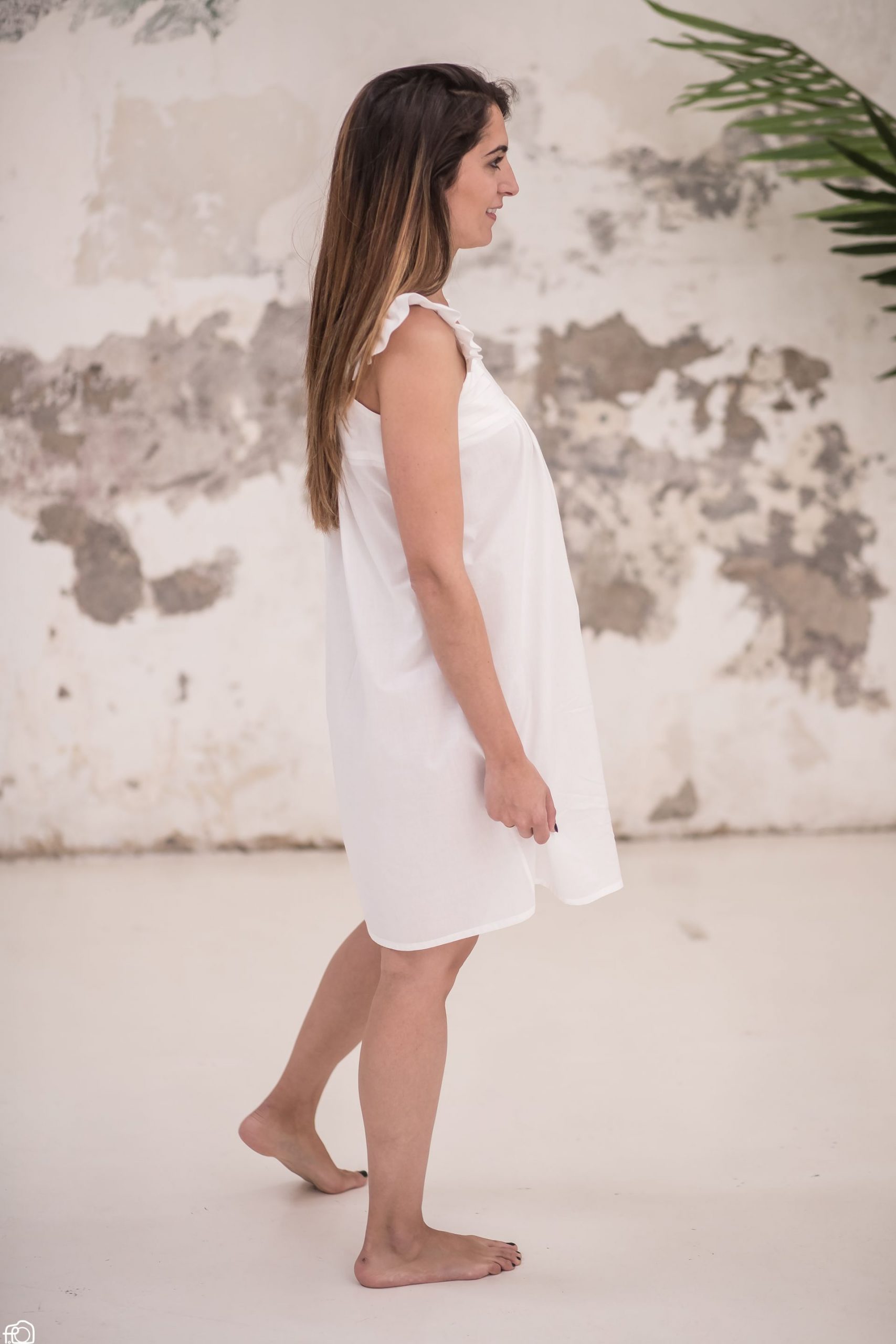 Descubre este elegante camisón blanco de tirantes para mujer con escote cuadrado y hecho a mano con tela 100% de algodón.