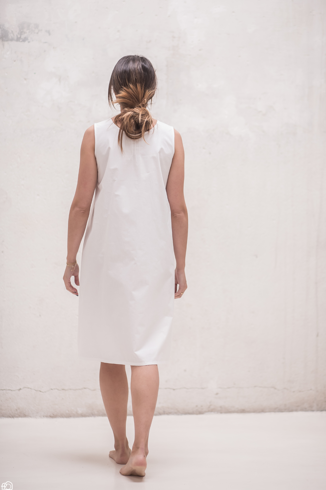 Elegante camisón de mujer con canesú bordado en blanco hecho a mano en España.