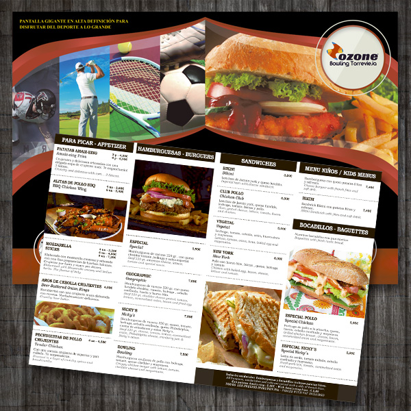 Cartas de restaurante tamaño A3 (42×29,7 cm) con un plegado (4 caras).
