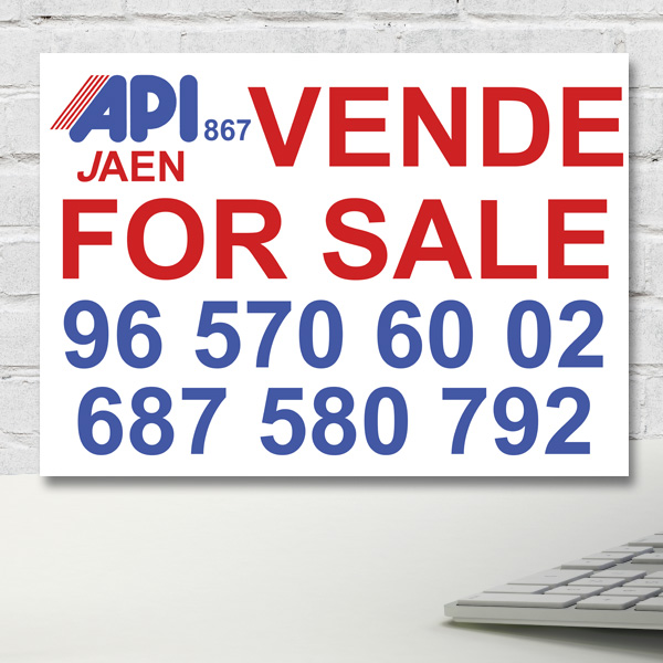 Carteles de polipropileno celular de 3 mm de grosor especial para inmobiliarias. El polipropileno celular es un material muy ligero y resistente. Las tintas que utilizamos son de larga duración y aguantan sin problemas la intemperie. Tenemos varios tamaños disponibles. Además va incluido 6 ollados (agujeros de sujección) para su fácil colocación.