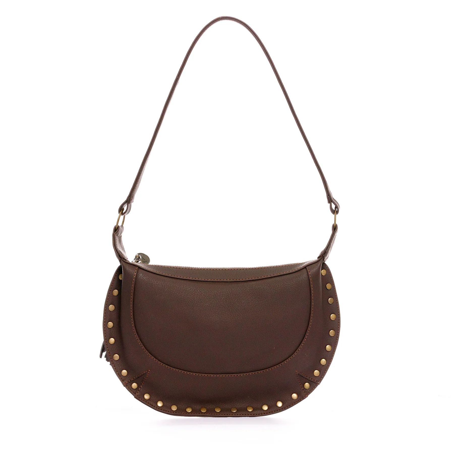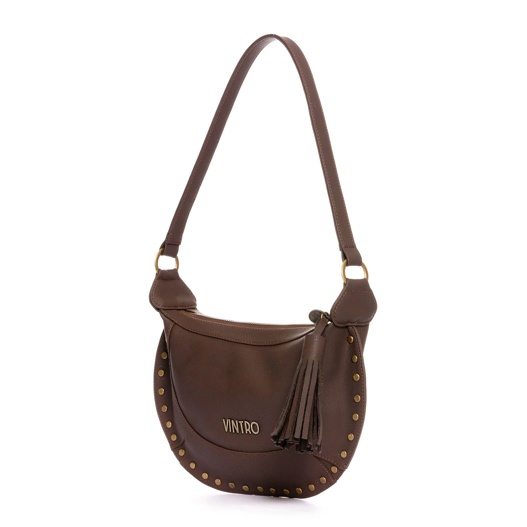 Clásica, versátil y con el toque perfecto para elevar cualquier look. Nuestra cartera Sunset mediana color café con detalles en taches dorados que le dan un aire moderno y sofisticado. Su diseño de silueta curva y tamaño ideal te permite llevar lo esencial con estilo. Cuenta con cierre en cremallera, herrajes en tono envejecido y un llamativo charm decorativo que la hace única.