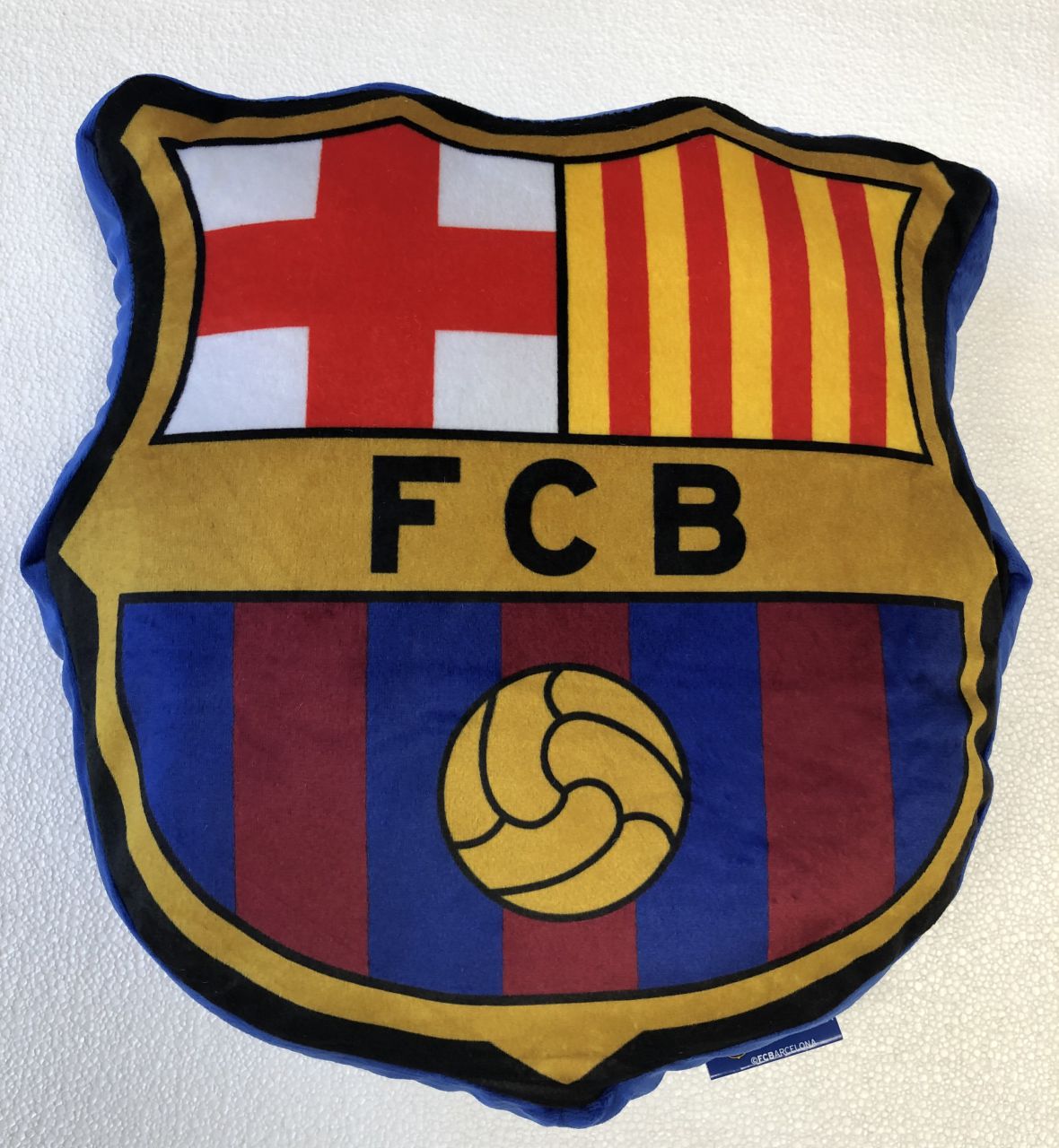 Cojín oficial del FCBarcelona de terciopelo con tacto muy suave. Con el diseño del icónico equipo de fútbol FC Barcelona en fondo azul marino.