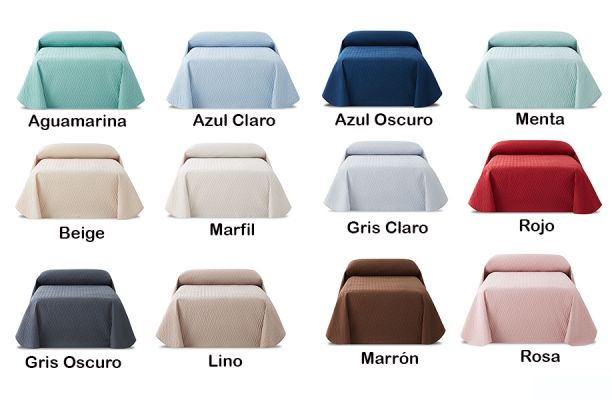 | Colores | Agua Marina, Azul Celeste, Azul Oscuro, Beig, Crema, Gris claro, Gris oscuro, Lino, Marfil, Marrón, Menta, Rojo, Rosa |