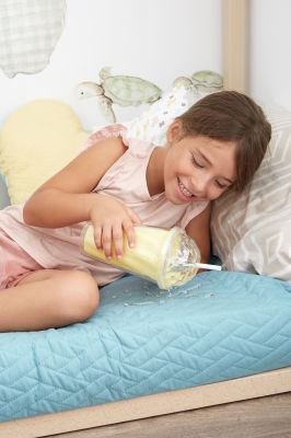 Esta colcha lleva por la parte del revés un tejido de pvc para evitar que los líquidos traspasen.