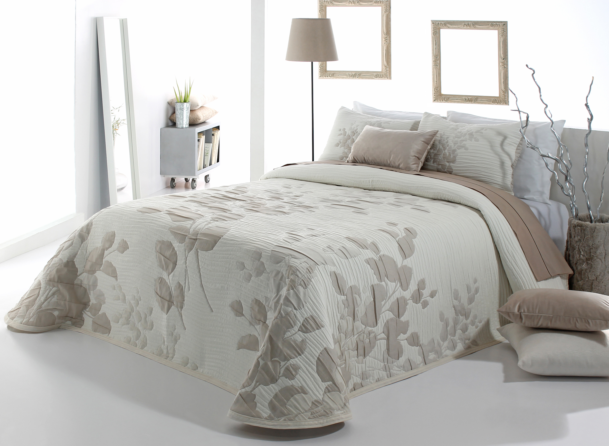 Colcha modelo LESLY de gama alta realizada en tejido jacquard con efecto rugoso, de tacto suave y muy agradable.