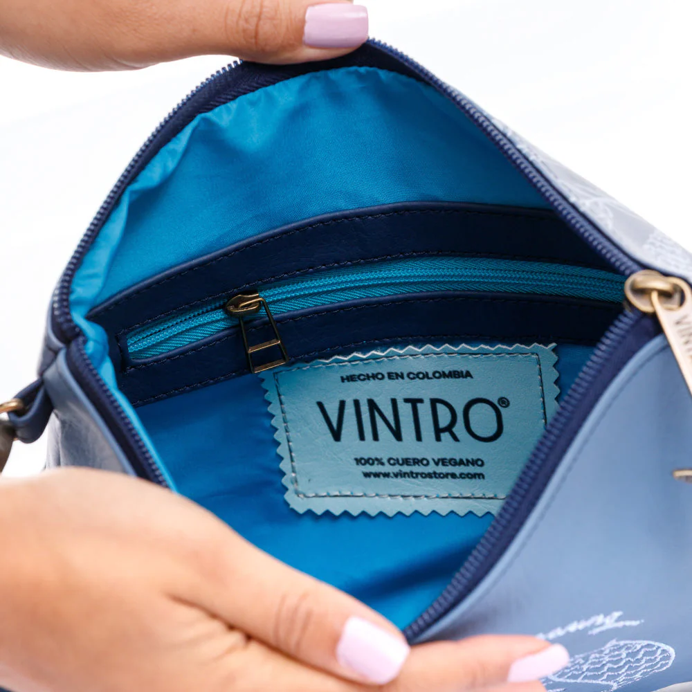 Explora la maravilla del océano con el manos libres Tokio, un accesorio que captura la esencia de las sirenas y el mar. Con hermosos bordados que representan la vida marina, este diseño es ideal para quienes desean llevar un pedacito de fantasía y encanto a donde quiera que vayan. Su práctica cargadera removible te permite llevarlo cómodamente sobre el hombro o como bolso cruzado, adaptándolo a tu estilo y necesidades. Con un bolsillo interno con cierre, tus pertenencias estarán seguras en todo momento. Fabricado con cuero vegano 100% colombiano.