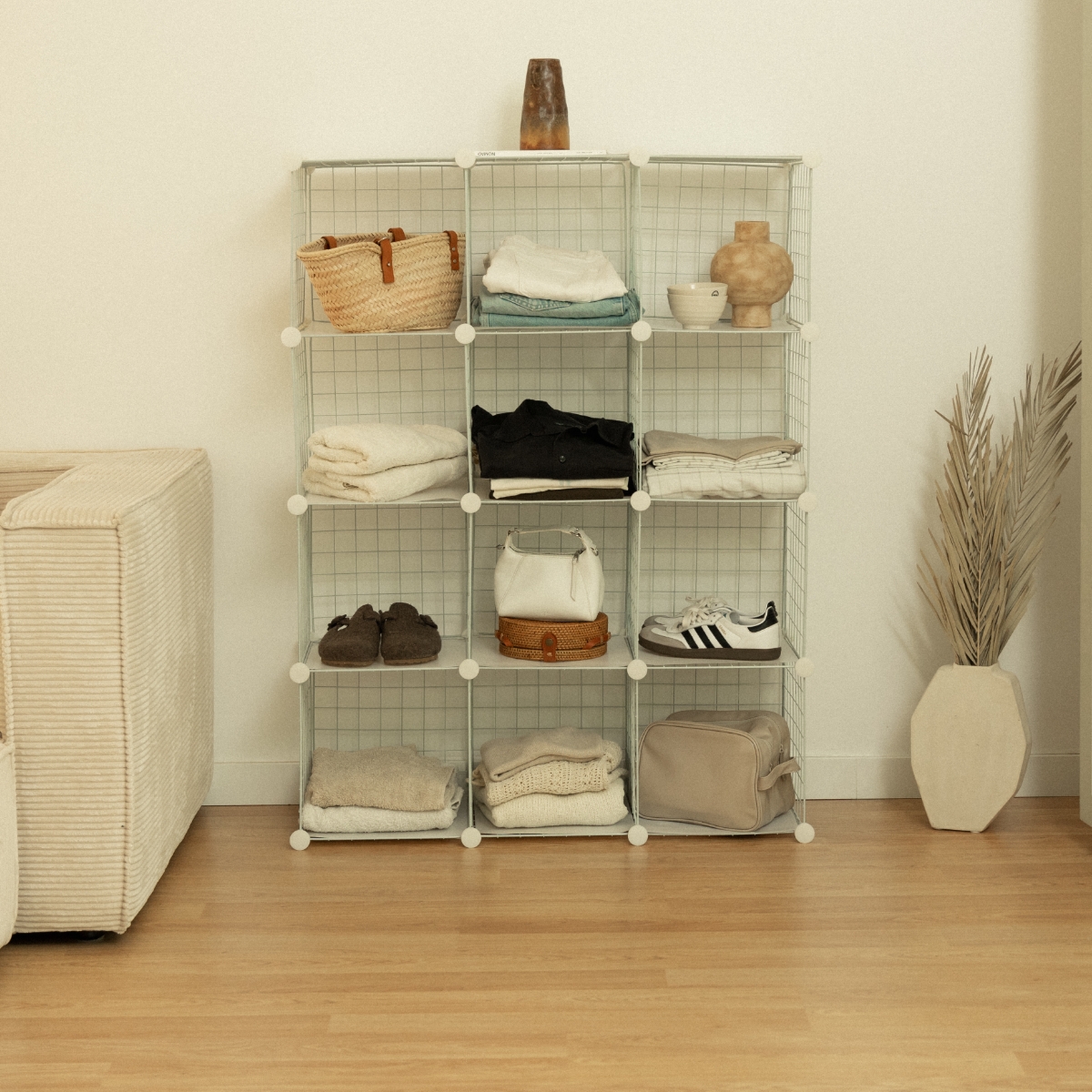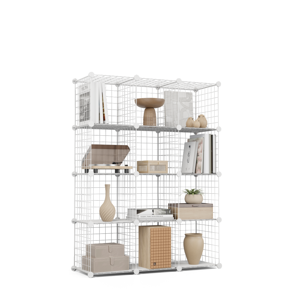 Orden a tu medida. Estantería modular de 12 cubos, fuerte, ligera y 100% adaptable. Úsala como zapatero, armario o estantería. Montaje fácil (martillo incluido), diseño DIY y máxima capacidad en poco espacio. Impermeable, segura y siempre lista para cambiar contigo.