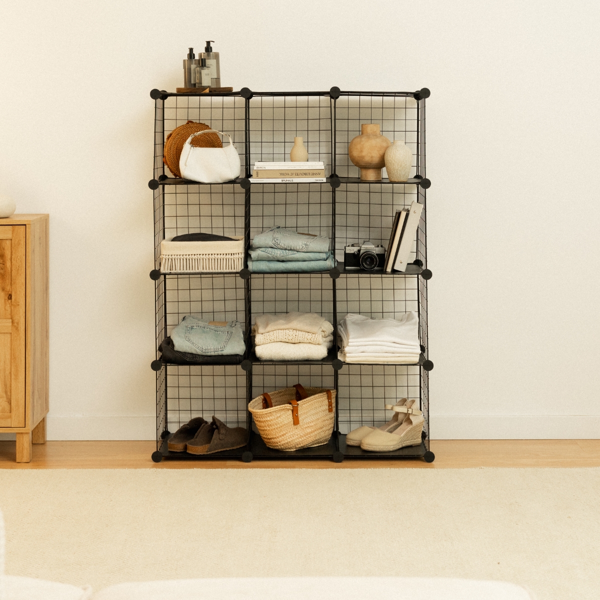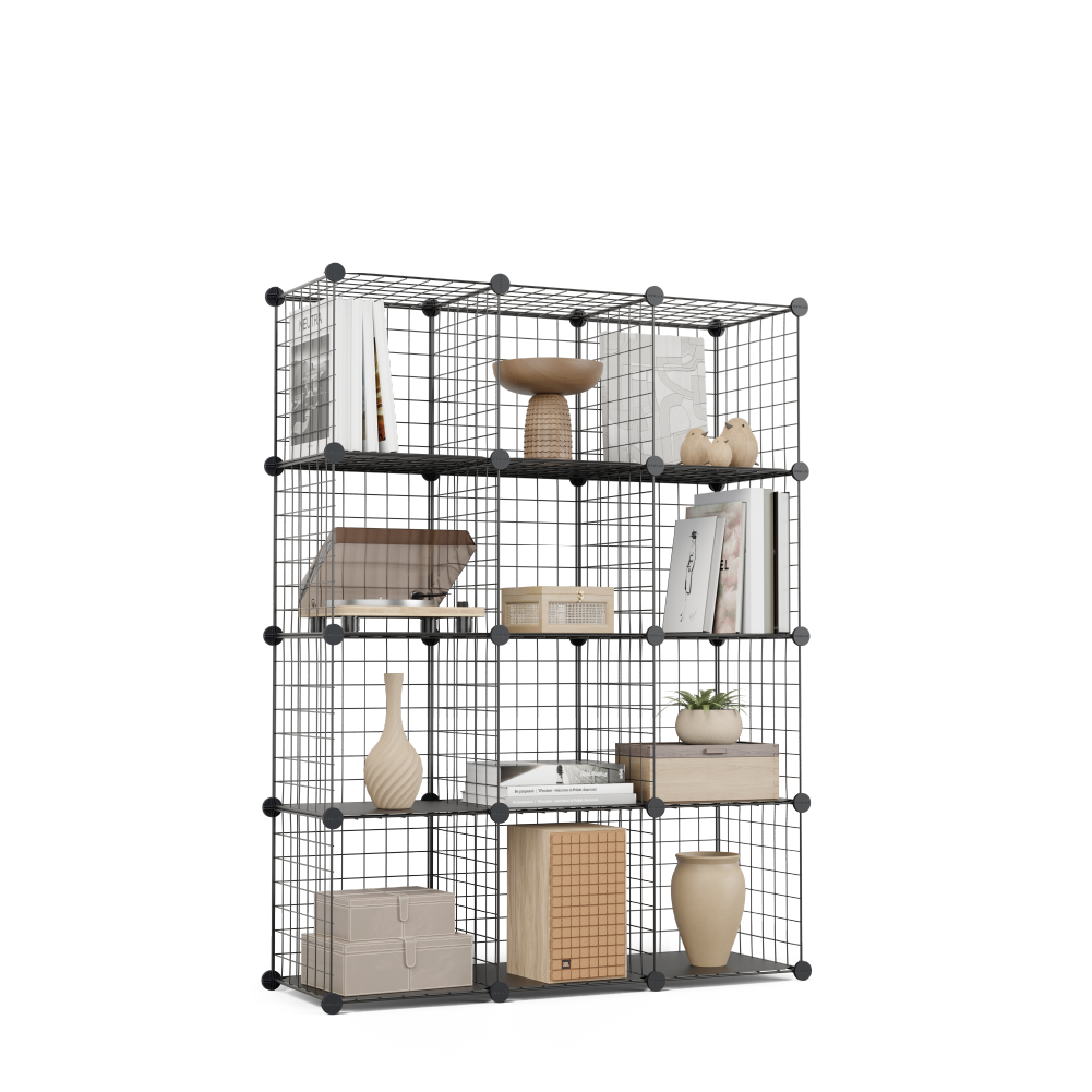 Orden a tu medida. Estantería modular de 12 cubos, fuerte, ligera y 100% adaptable. Úsala como zapatero, armario o estantería. Montaje fácil (martillo incluido), diseño DIY y máxima capacidad en poco espacio. Impermeable, segura y siempre lista para cambiar contigo.