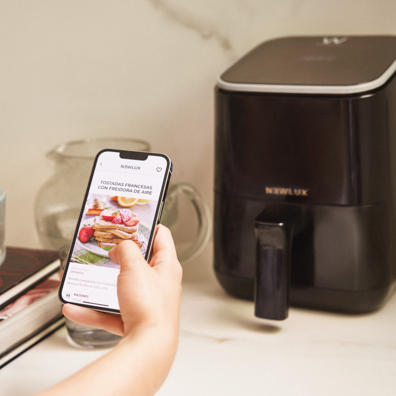 Incorpora las mejores recetas para que puedas aprovechar al máximo la freidora de aire desde la APP ‘Newlux Recipes’.