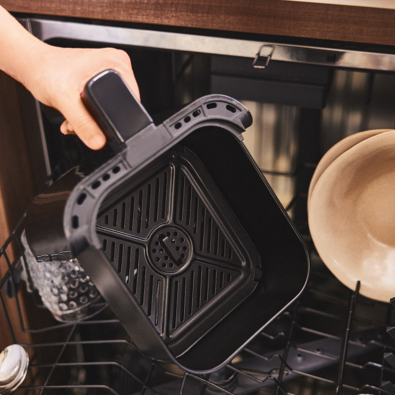Cesta diseñada con tecnología antiadherente Nonstick Teflón libre de BPA, PFOA y PTFE apta para limpiar en el lavavajillas.