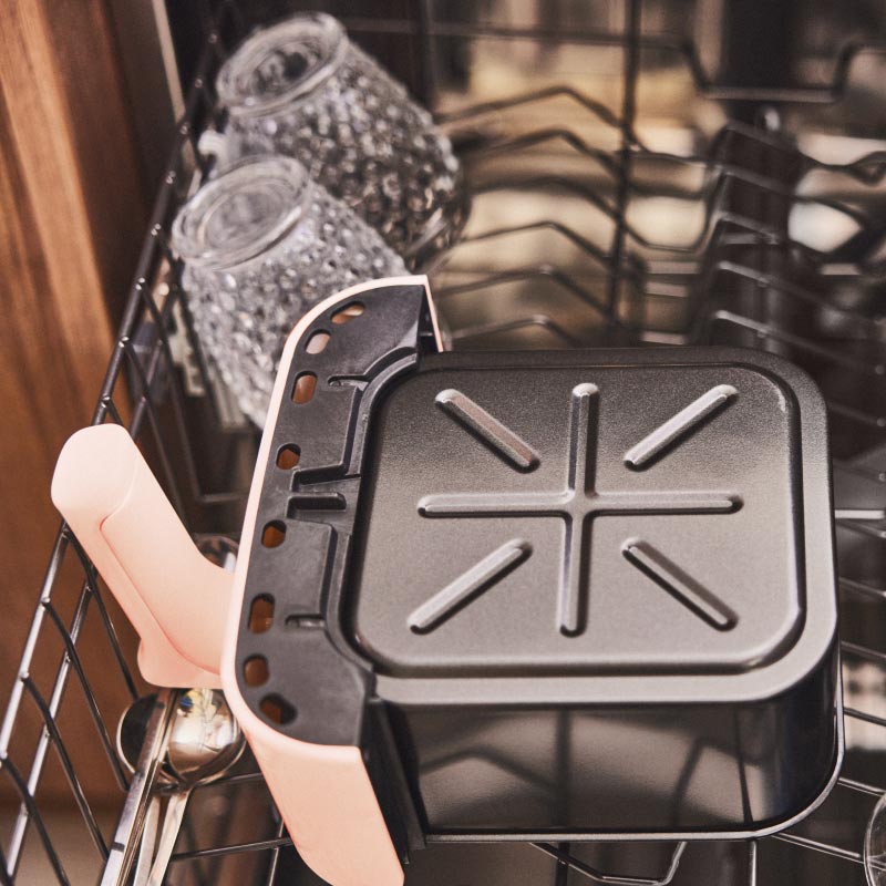 Cesta diseñada con tecnología antiadherente Nonstick Teflón libre de BPA, PFOA y PTFE apta para limpiar en el lavavajillas.