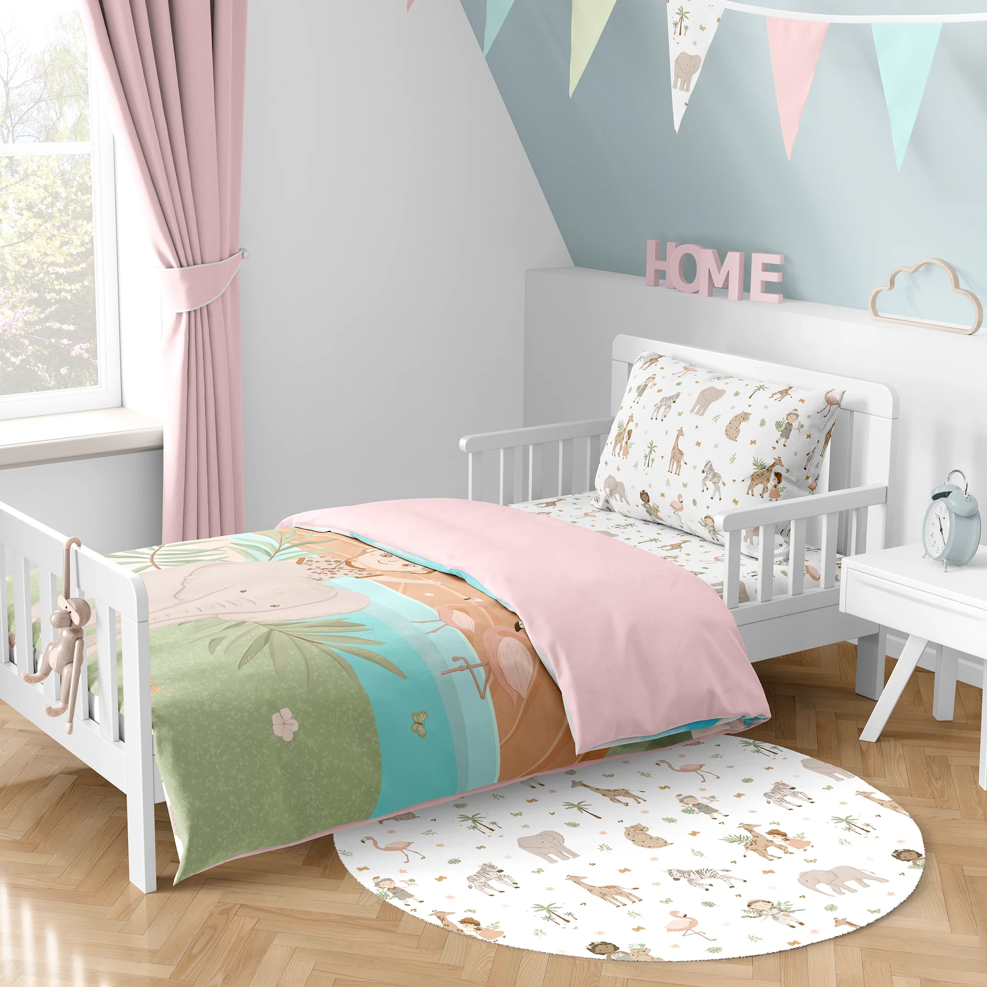 Funda Nórdica Reversible Cama Safari para niña colores pasteles