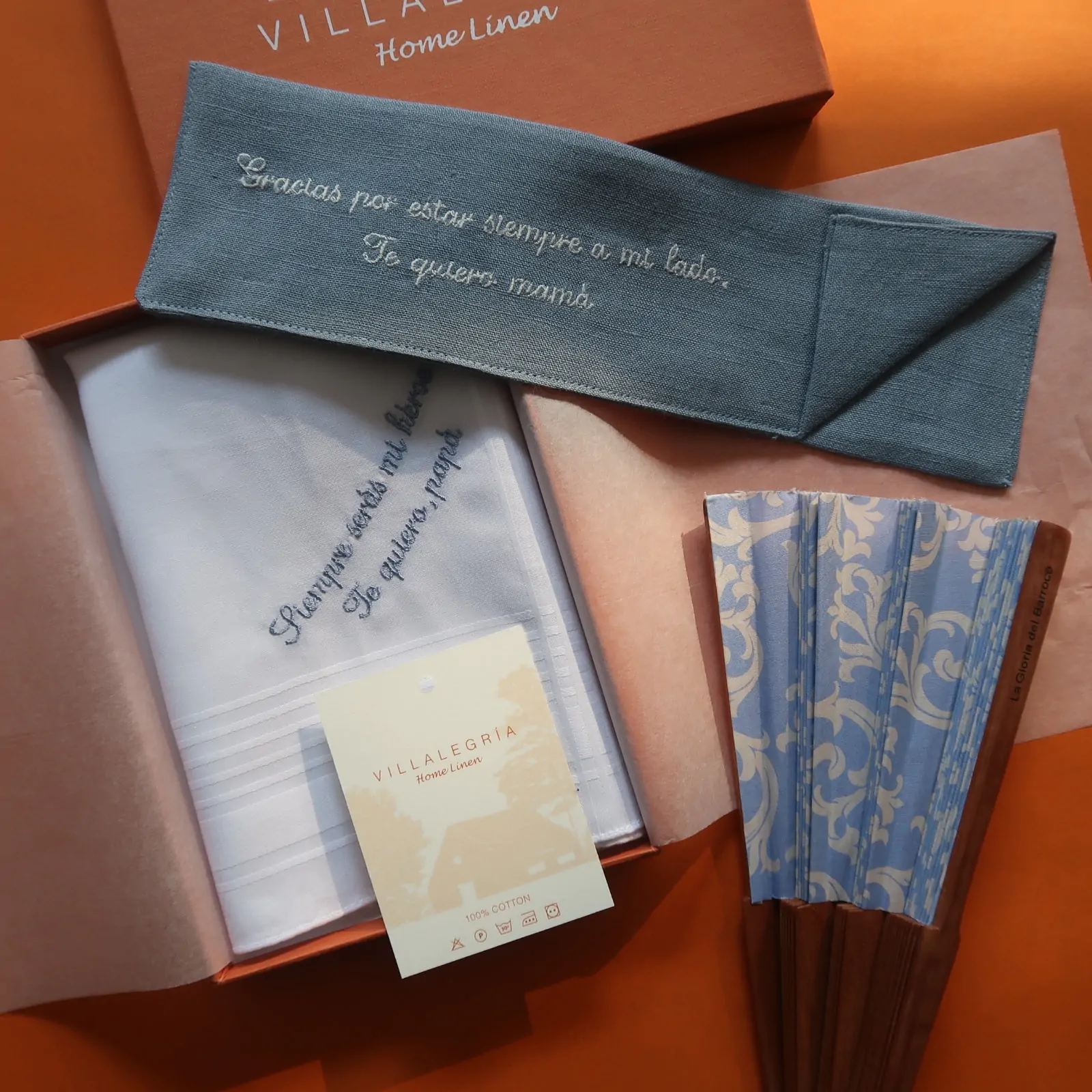 Funda para Abanico de Lino Bordada con Mensaje y Fecha – Un Tesoro de Significado y Momentos