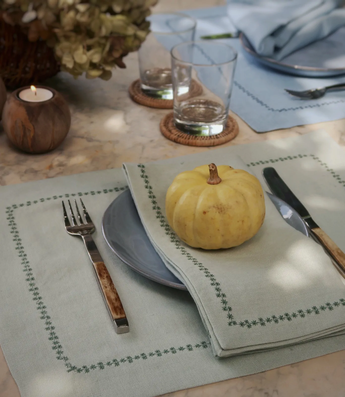 El Mantel individual margaritas bordado está terminado con una encantadora cenefa de pequeñas florecitas bordadas alrededor de la orilla. Puedes escoger el color del bordado a tu gusto para coordinar con tus platos. Además puedes combinarlo con la servilleta a juego.