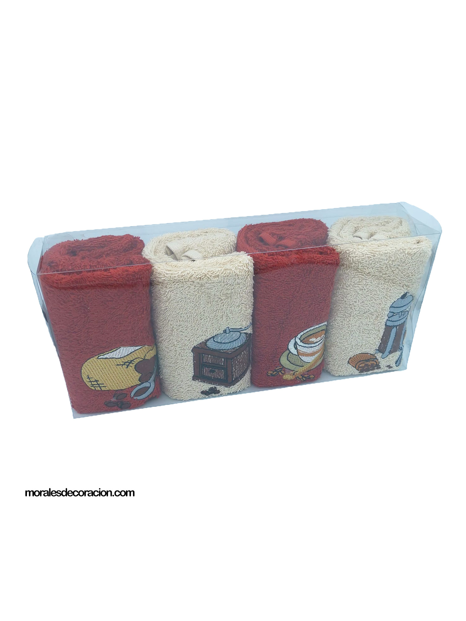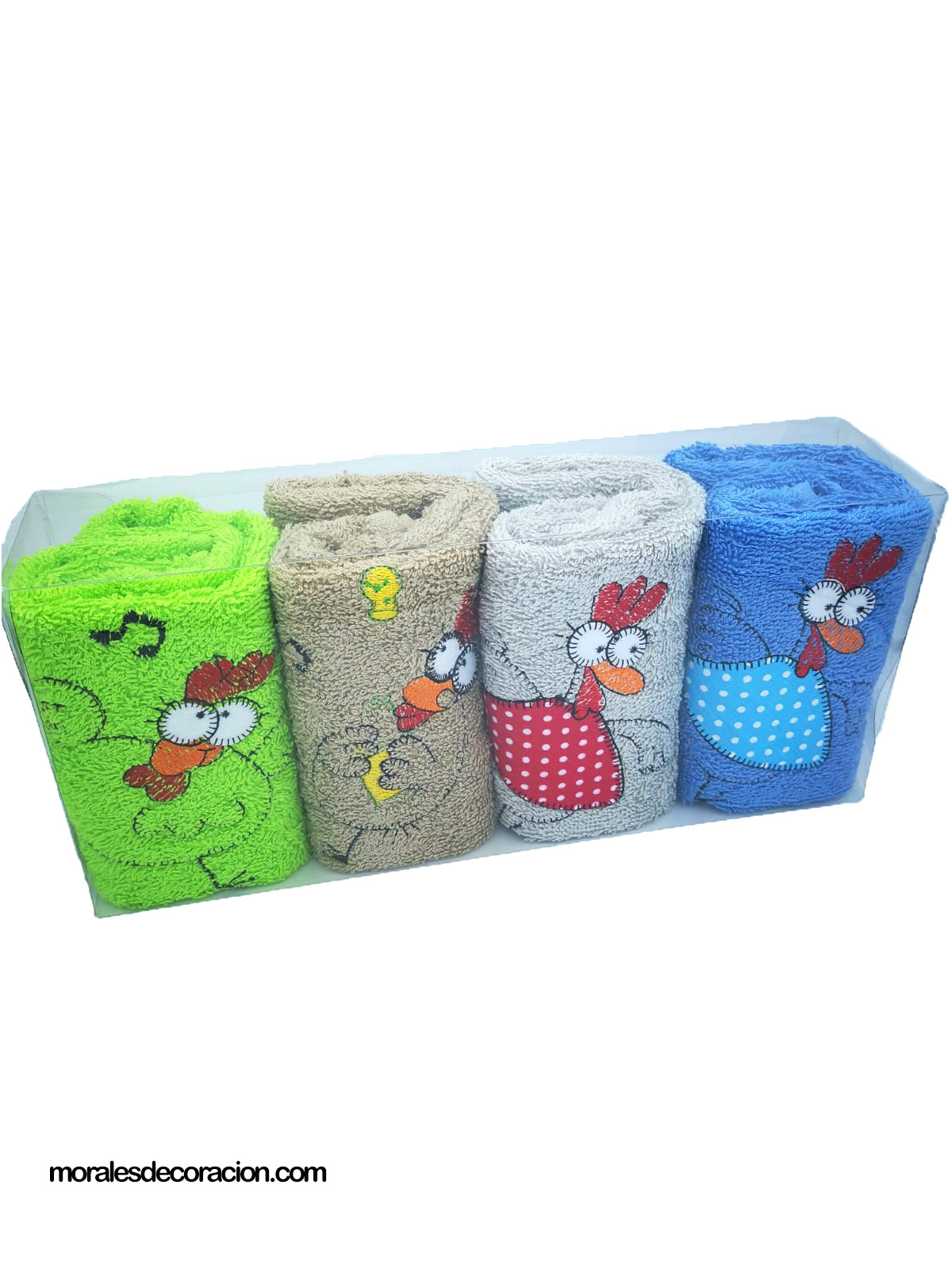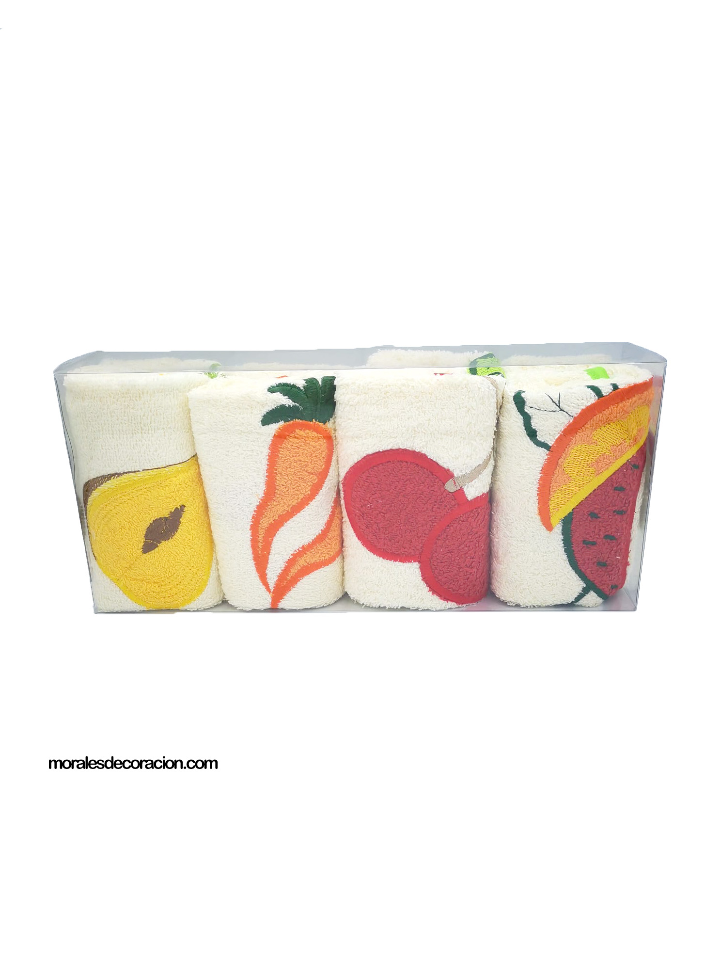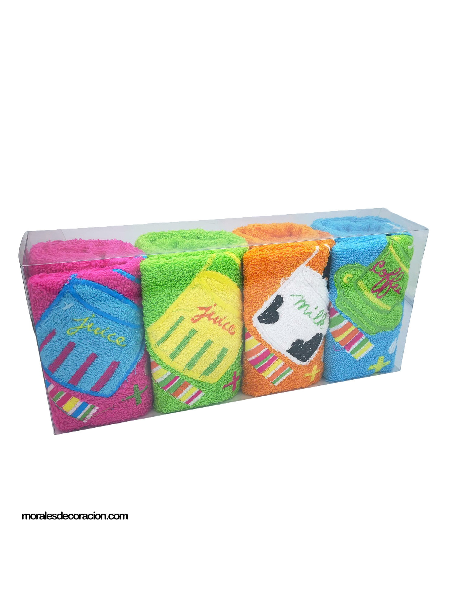 Juego de paños 4 unidades de cocina bordados con aplicaciones de tela cosido al paño.