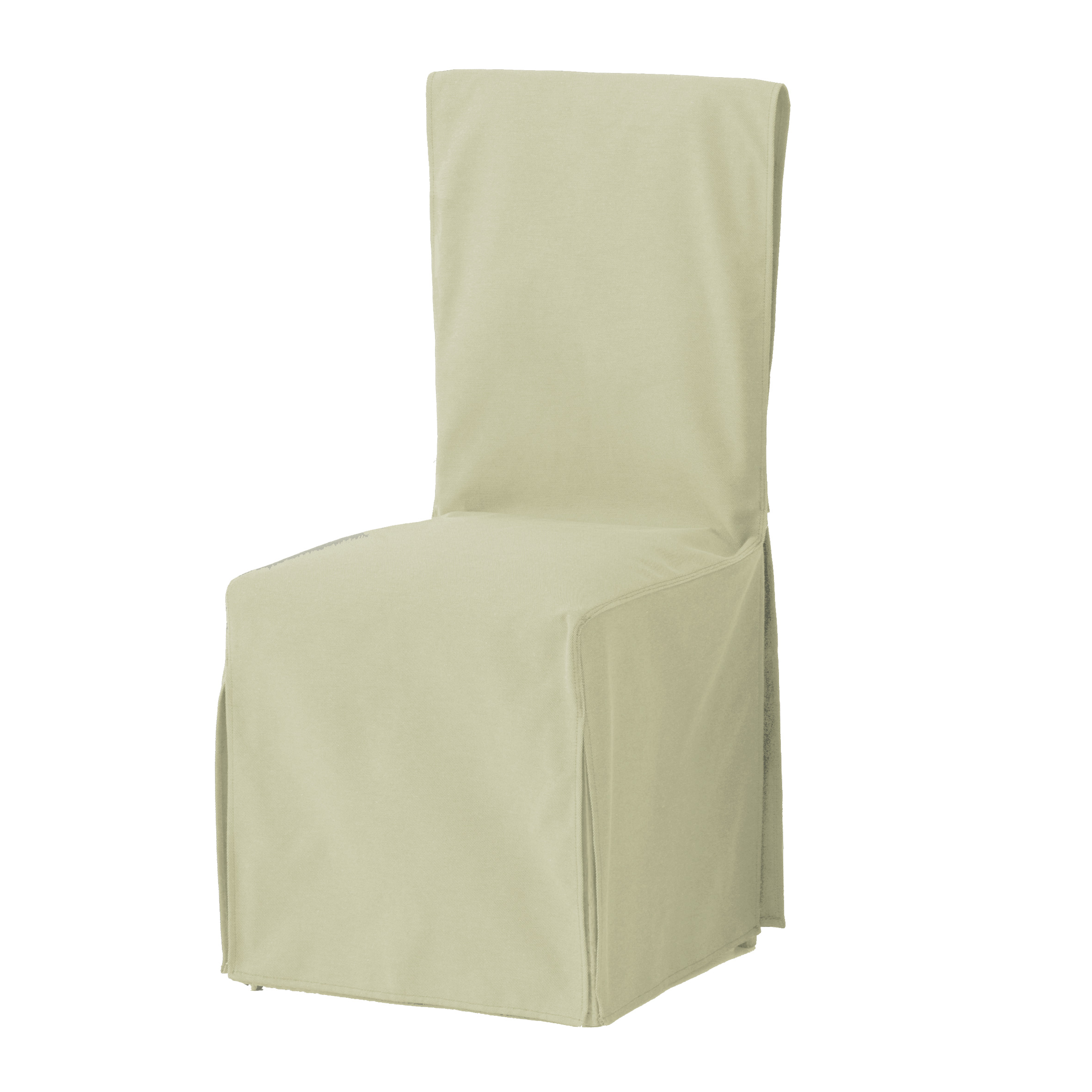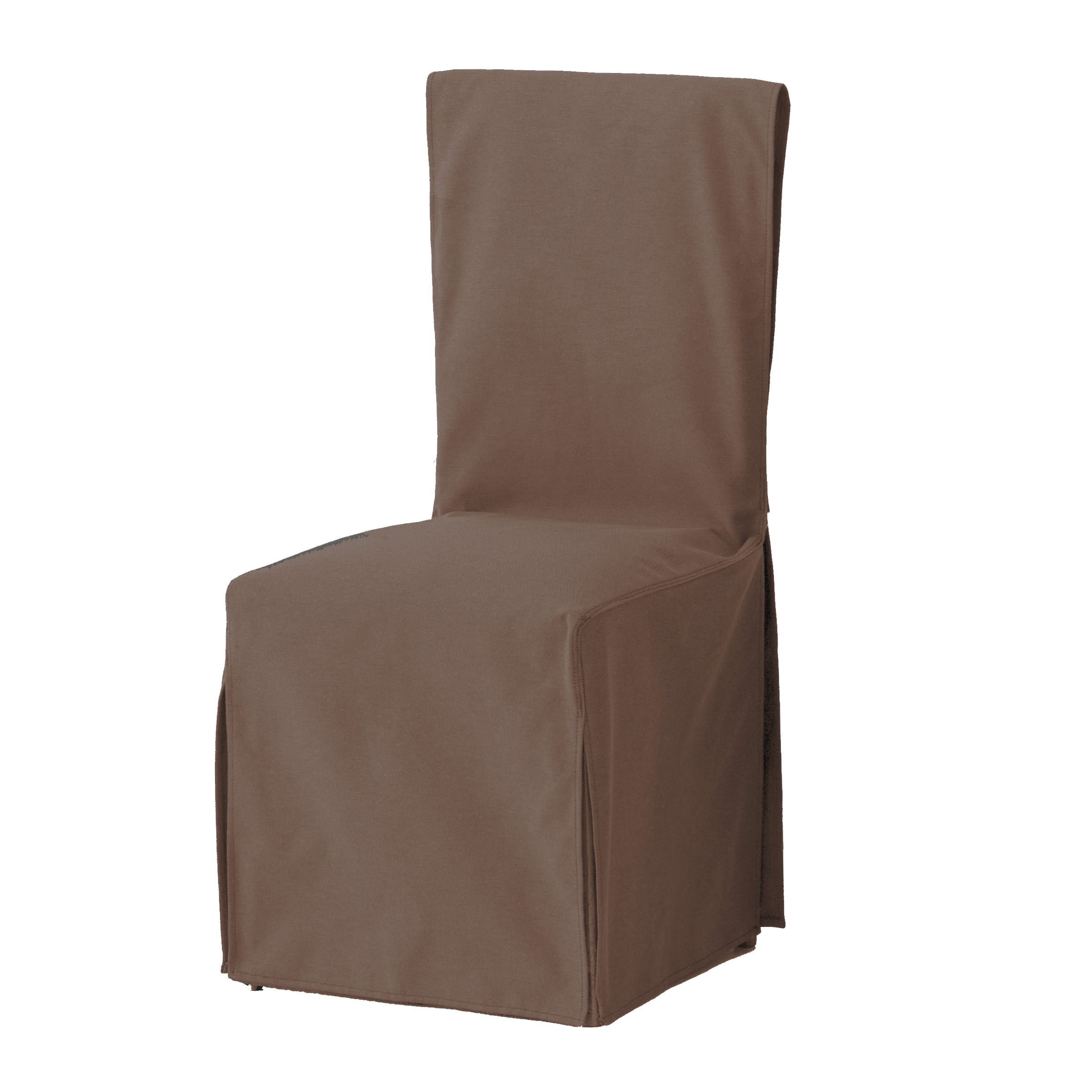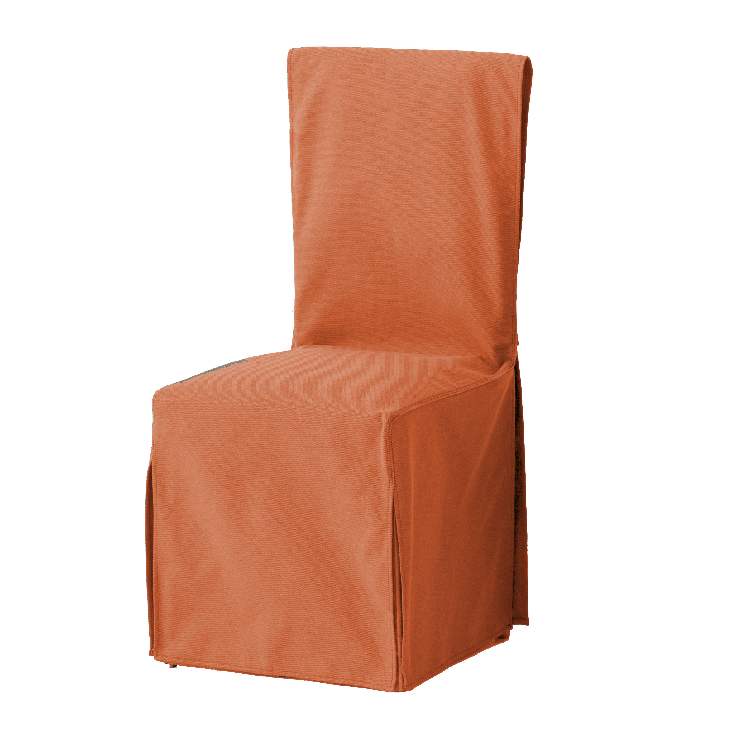 Funda de silla, compuesta en una sola pieza que se ajusta a la silla por su parte trasera con cintas, formando un lazo. Protege y decora la silla aportando un toque más elegante.
