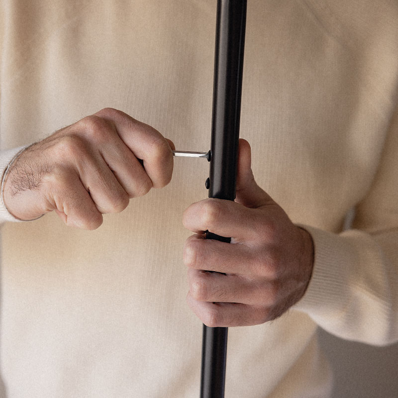 La estructura de metal, con acabados lisos y pulidos resistentes a la corrosión, soporta hasta 35 Kg de carga máxima. La base con 3 puntos de apoyo incrementa la estabilidad y seguridad.