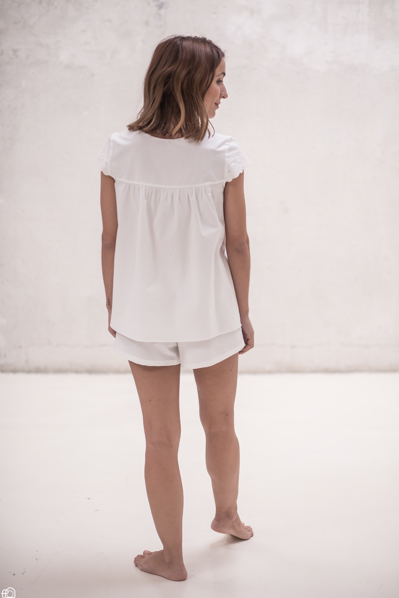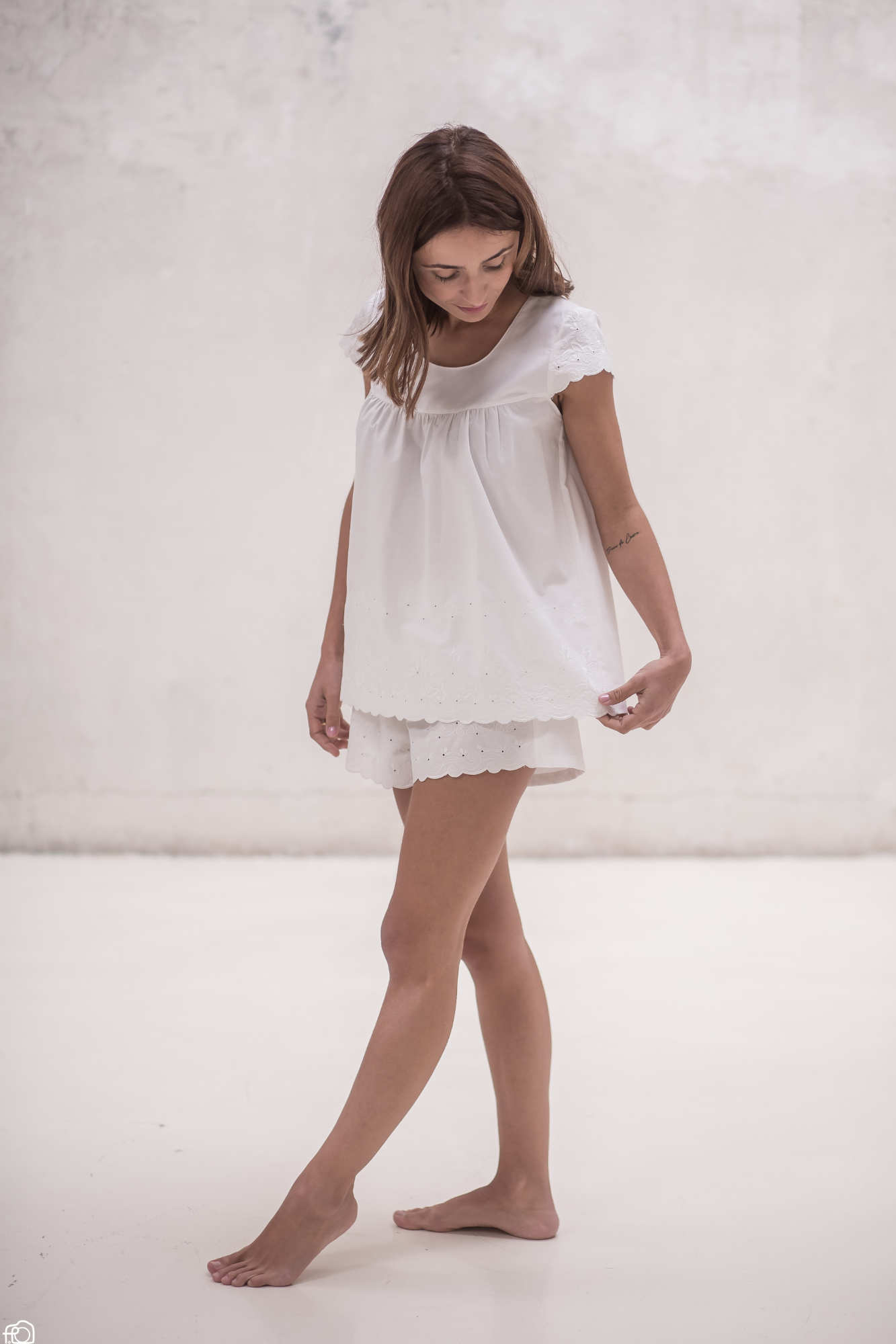 Descubre nuestro pijama corto para mujer con bordado hecho a mano.