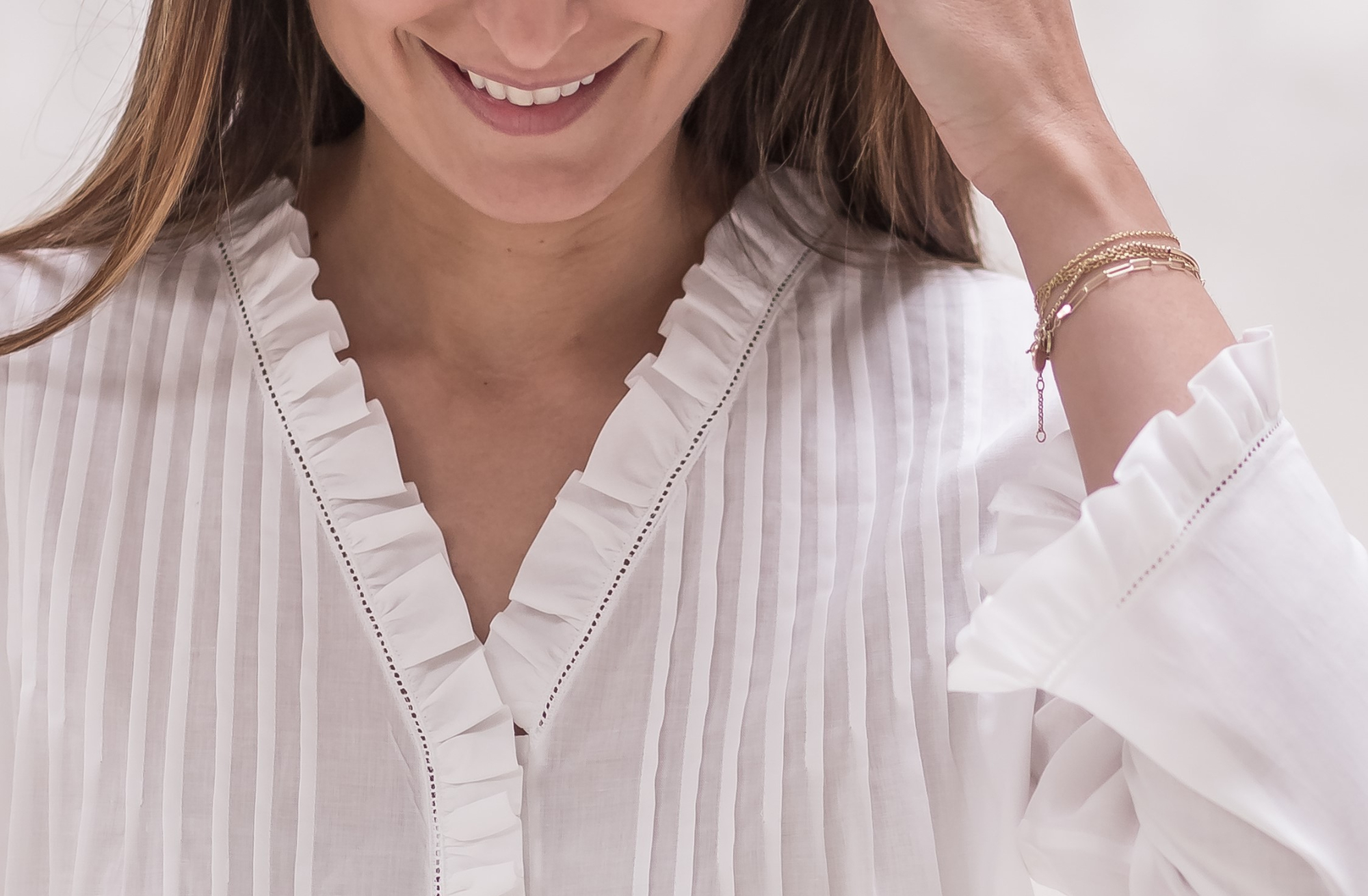 Dicho volante lo encontramos también en el final de las mangas tanto si es larga como si has elegido la opción de manga corta.