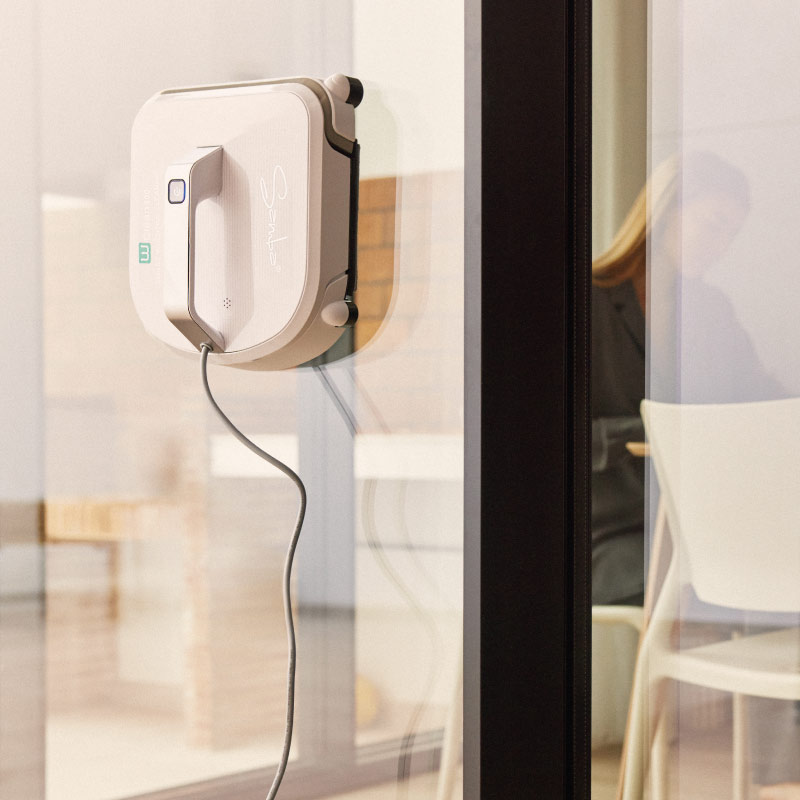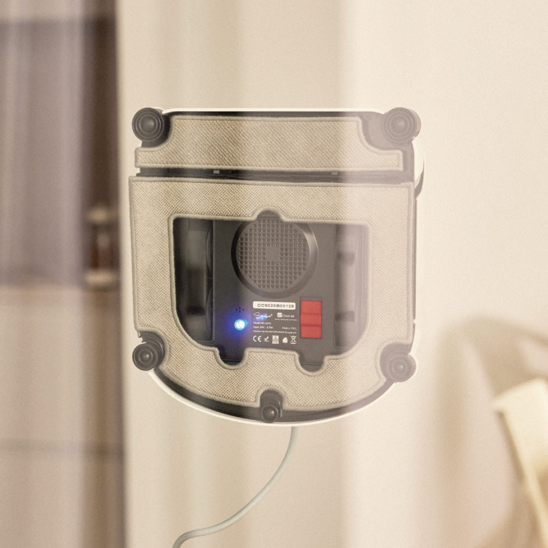 La potencia de succión de su bomba (80W), asegura su posición vertical y consigue que el robot se mantenga adherido al cristal.