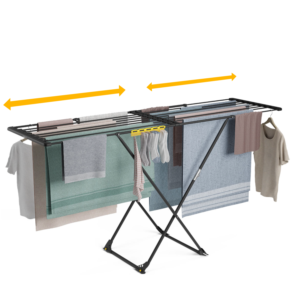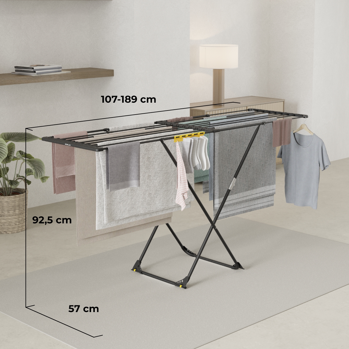 El tendedero extensible tiene una capacidad total de 21 m de secado. Ideal para colgar una gran cantidad de ropa al mismo tiempo.
