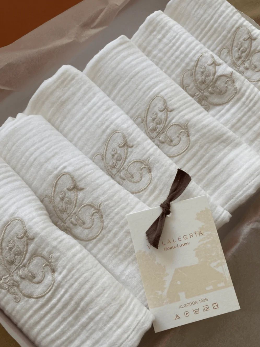Toalla de Muselina de Algodón Orgánico Bordada Villalegría® – Cuidado Suave y Estilo Único