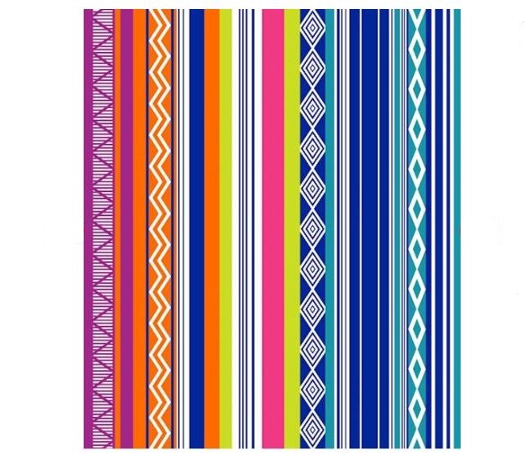 Toalla 100% algodón Egipcio de playa de calidad fabricada en jacquard. Tacto suave con acabado terciopelo. El diseño multicolor con líneas de arriba a abajo en distintos diseños.