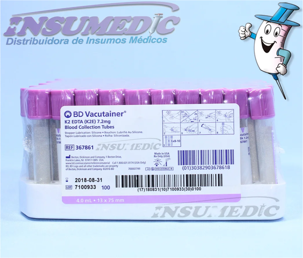 TUBO PARA EXTRACCION DE SANGRE AL VACIO, CON ANTICOAGULANTE K2 EDTA PULVERIZADO.