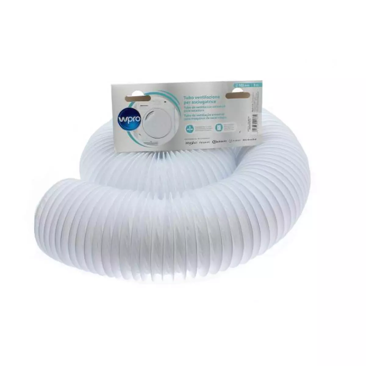 El tubo de ventilación Wpro para secadoras es un accesorio esencial para garantizar un funcionamiento óptimo de tu electrodoméstico. Con un diámetro de 102 mm y una longitud de 3 metros, este tubo universal es fácil de instalar y se extiende hasta los 3 metros, permitiendo una ventilación eficiente. Compatible con todas las marcas de secadoras, este tubo es resistente y duradero, asegurando un rendimiento impecable.