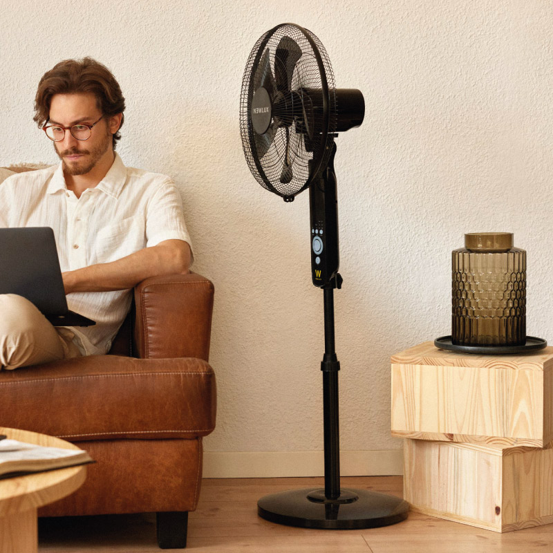 ¡Es tiempo de estar a la fresca y lo sabes! Aprovecha sus 5 aspas, su sistema oscilante de 80º, su mando a distancia y su altura regulable para disfrutar de un verano inolvidable sin preocuparte. Su base robusta y antideslizante aporta la estabilidad y seguridad que necesitas.