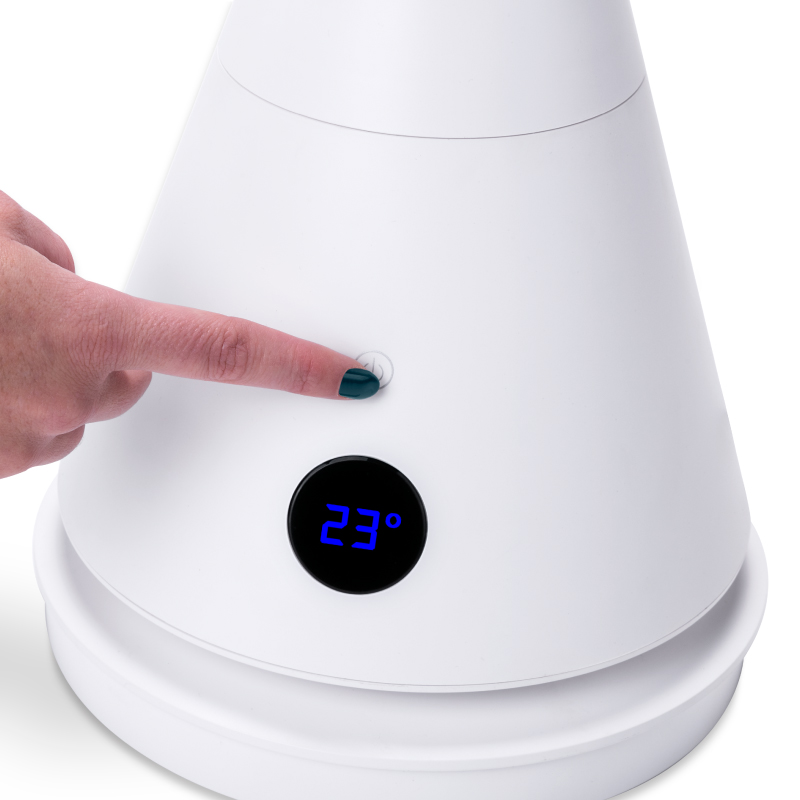 Gracias a su pantalla táctil, podrás configurar la velocidad a tu gusto, activar o desactivar el modo oscilación y programar el temporizador de hasta 8h. Todo de manera simple e intuitiva.