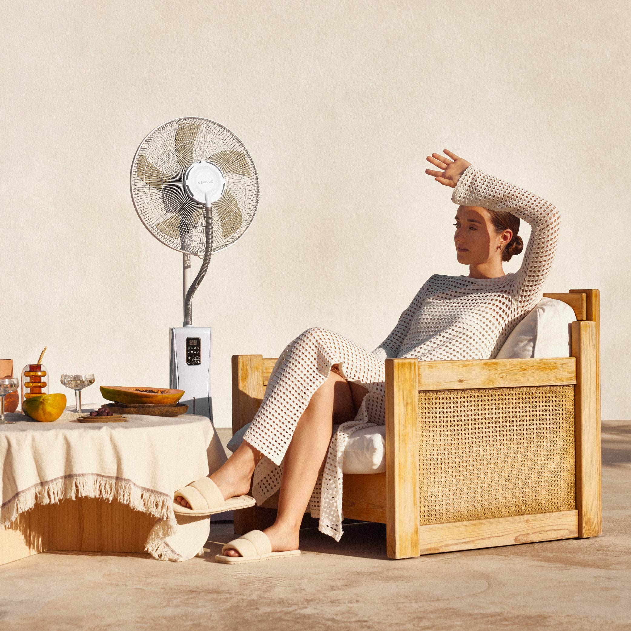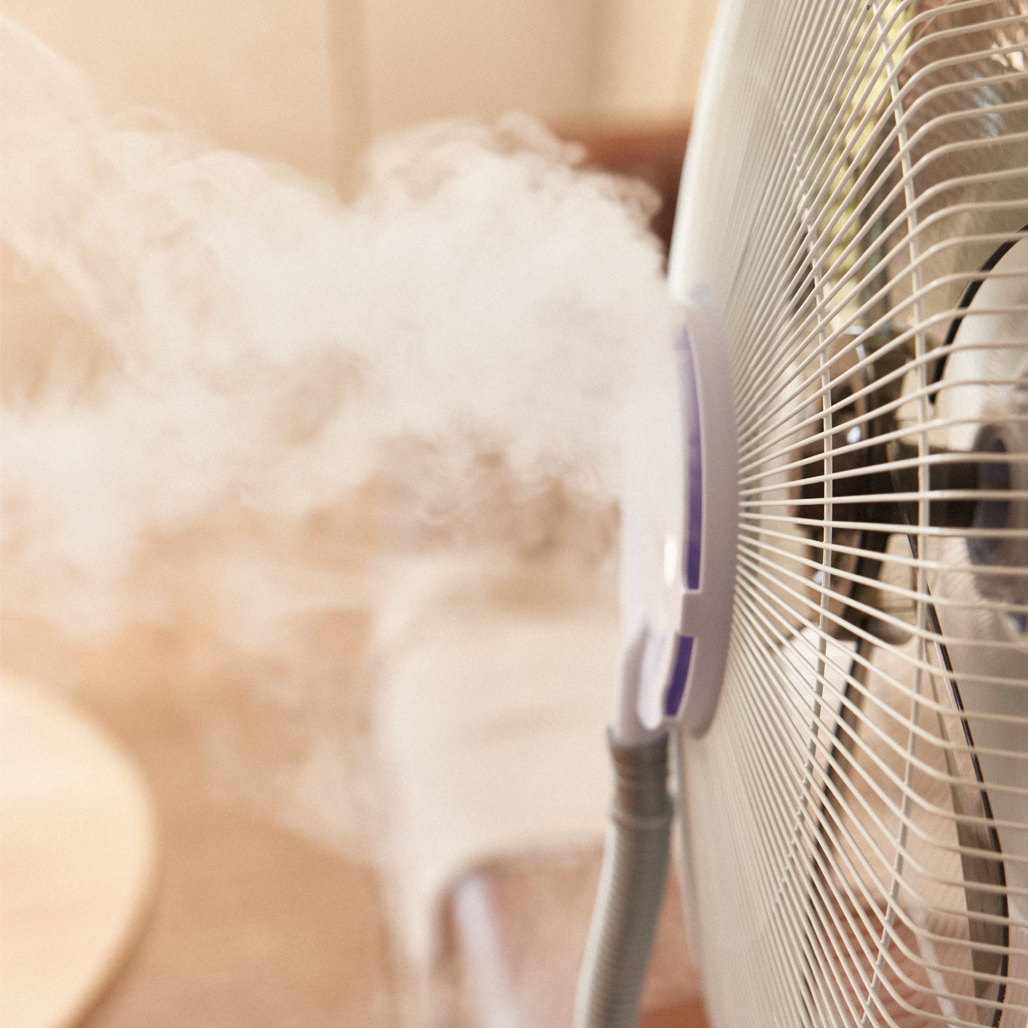 Úsalo como ventilador de pie o aumenta la sensación de frescor gracias a su función nebulizadora.